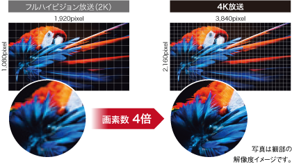 従来のフルハイビジョン放送の4倍(3,840×2,160画素)の高解像度で、より自然に近い、細部まで緻密な美しい映像表現を実現します。