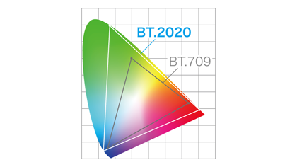 新4K8K衛星放送などの用途向けに策定された「ITU-R BT.2020規格」に対応。従来のハイビジョン放送規格 BT.709に比べて色の表現範囲が大幅に広がり、繊細で豊かな色彩描写を実現します。