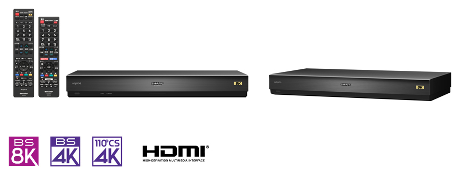 | 接続端子 | アンテナ入力:1系統、アンテナ出力:1系統 8K映像出力:1系統 (HDMI 4端子) (4K出力時(注7)はHDMI 1端子使用) 音声専用出力:1系統 (HDMI 1端子)(注8) USB端子:1系統 Type-A(8K対応USBハードディスク用) LAN:1系統(10BASE-T/100BASE-TX) |