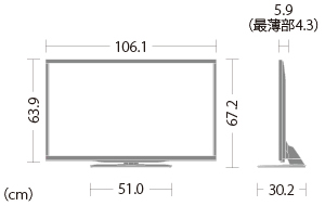 | ※ | テレビのV型(60V型など)とは、有効画面の対角寸法を基準とした大きさの目安です。(従来のブラウン管式テレビの型(32型など)は有効画面の対角寸法を表すものではなく、ブラウン管の外径対角寸法を基準としたものです。) |