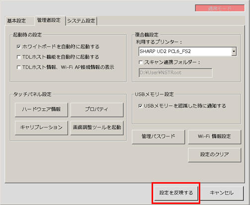 (4)[OK]ボタンを押下すると、設定画面が表示されます。