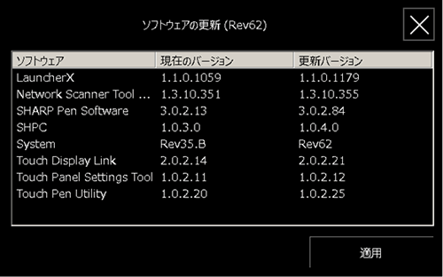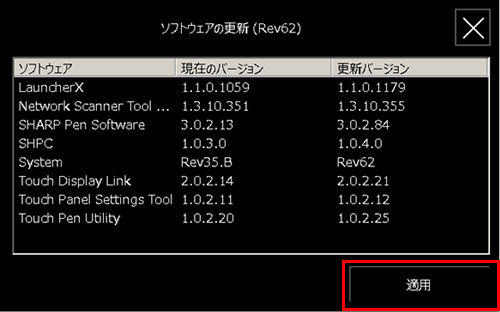 (1)アップデート詳細情報画面で[適用]ボタンをタッチすると、アップデート確認画面が表示されます。