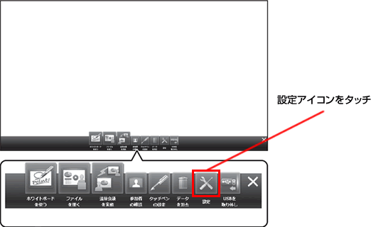 (2)ホワイトボードの画面下側のランチャーの呼び出しボタンをタッチします。
