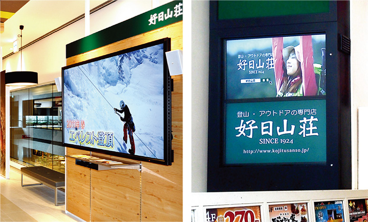 (右)好日山荘新宿東口店にも52V型2台を導入