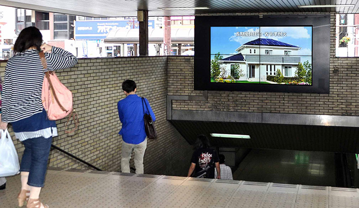 西日本鉄道(以下西鉄)久留米駅の1日平均乗降人員は、西鉄としては福岡(天神)駅に続き2番目に多い駅 です。この駅から地下通路につながる階段に、17年間LED電光掲示板を設置していましたが、配信するのは文 字情報が中心で、色も4色に限定されていました。
