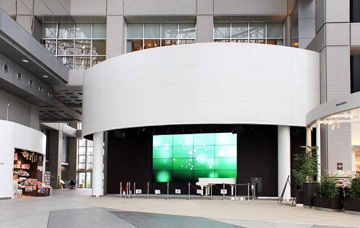 社屋のリノベーション事業は2013年度からの3ヵ年計画となっており、2014年度には正面玄関への4面マルチディスプレイの導入を計画しています。アトリウムの16面マルチと上手くリンクさせて、皆さまにより一層楽しんでいただけるような効果的な運用を行っていきたいと考えています。