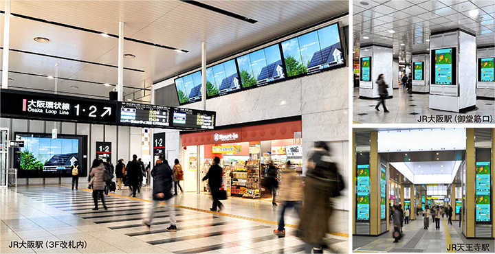 当社は2011年の大阪駅リニューアルオープンを機に、12面マルチ4セットを含む106台のサイネージを導入しました。その後3年間で、サイネージ広告はより一層進展し、大手クライアントによる全国共通の広告も増加しています。