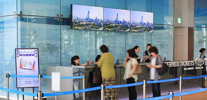 ハルカス300(展望台)のチケットカウンター(16階)に3面マルチ