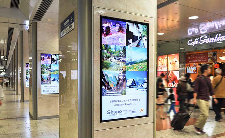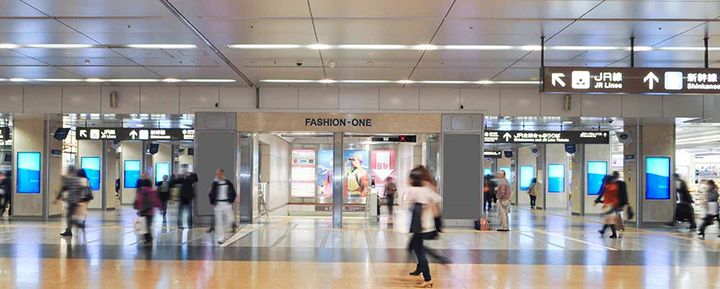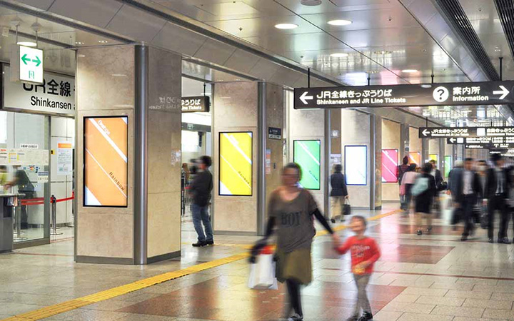JR名古屋駅中央コンコースにある50本の柱に2面ずつ設置。2014年10月、広告運用開始。