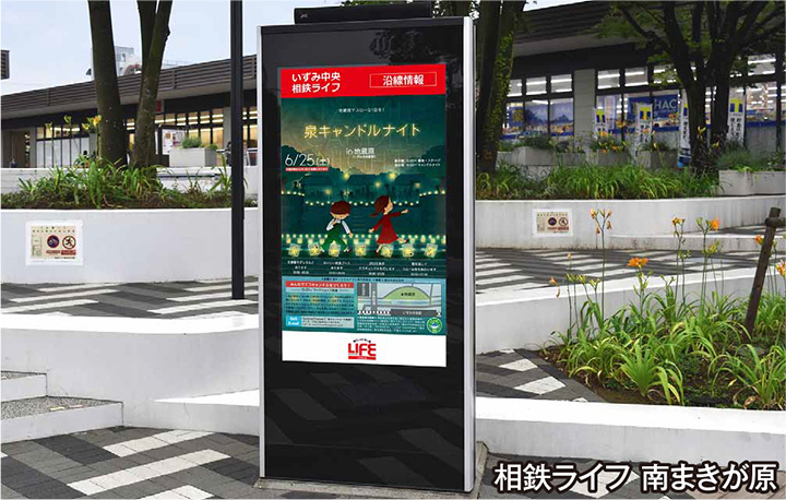 現在サイネージでは、相鉄ライフと入居するテナントからの情報を主に発信していますが、今後は近隣の店舗からの広告も幅広く受け入れて、広告料の収入源としても活用したいと考えています。また、鉄道の運行情報や防災情報を表示するなど、ICTを活用した情報発信で地域住民の利便性向上にも役立てていきたいと思います。