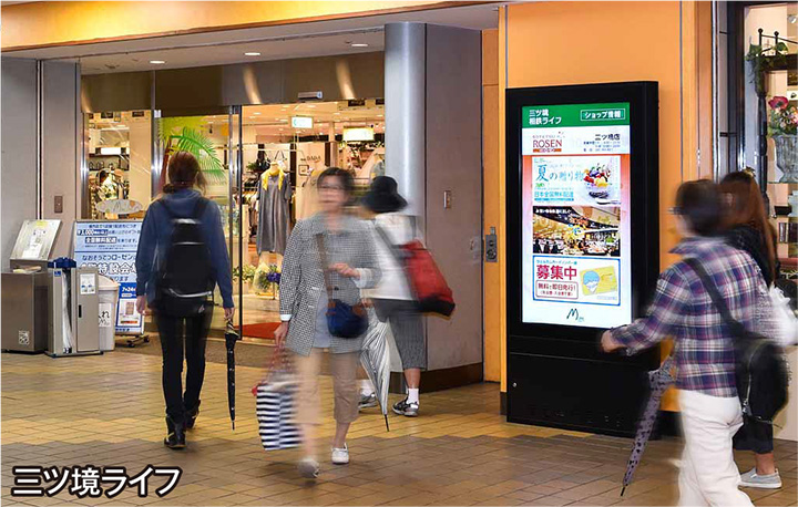 沿線各駅の商業施設のリノベーションにあたり、これまでキャンペーンやテナントの情報発信に使っていたポスターやチラシに加えて、デジタルサイネージを店舗入口付近の屋外に設置することで、訴求力をより一層高めたいと考えました。
