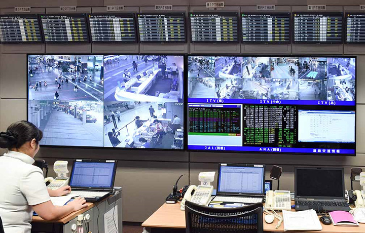 当インフォメーションセンターでは、空港利用客からの電話問い合わせの応対や、フライトモニターの監視業務、呼び出し放送などの業務を行っています。スタッフは、これまで壁面に並べて設置された何台もの小型モニターを見て、フライト情報やカメラ映像を確認していましたが、画面が小さいため細かい文字や映像の細部が判別しにくく、席を立って近くで確認しないといけないケースがあり、スムーズな応対の支障となっていました。
