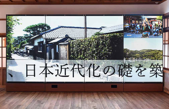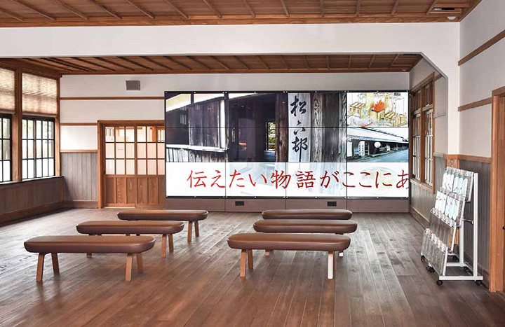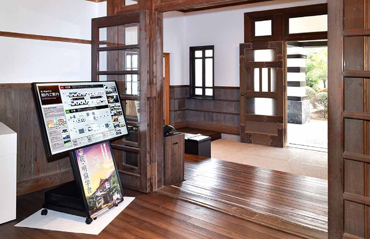 藩校跡地に建つ旧小学校(昭和10年築)をリニューアルして公開した明倫学舎の中に、市内観光の起点となる観光インフォメーションセンターを開設。団体客が集まる広い室内でも見やすく、萩市の歴史や文化の魅力を強く印象づけられる映像機器が求められました。