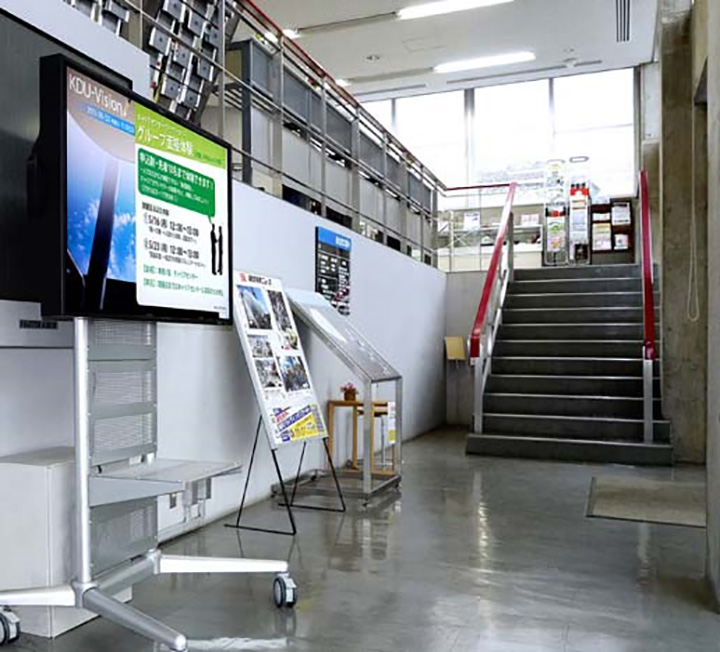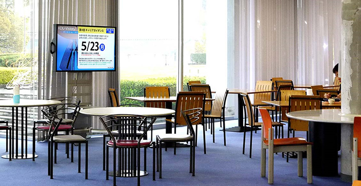 2010年10月、校内の掲示物のぺーパーレス化を目標に、食堂、本館1階、初代学長の建築学者・吉武泰水を記念した吉武記念ホール内カフェテリア、コンピューターラボラトリーに各1台づつ導入。