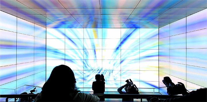 正面、上下、左右に画面を配置した5面キューブ・システムは、映像の世界に入り込んだような独特の浮遊感が得られるため、まったく新しい感動体験を提供できます。また、“液晶のシャープ”ならではの美しい映像も、お客さまを魅了するポイントになると考えました。