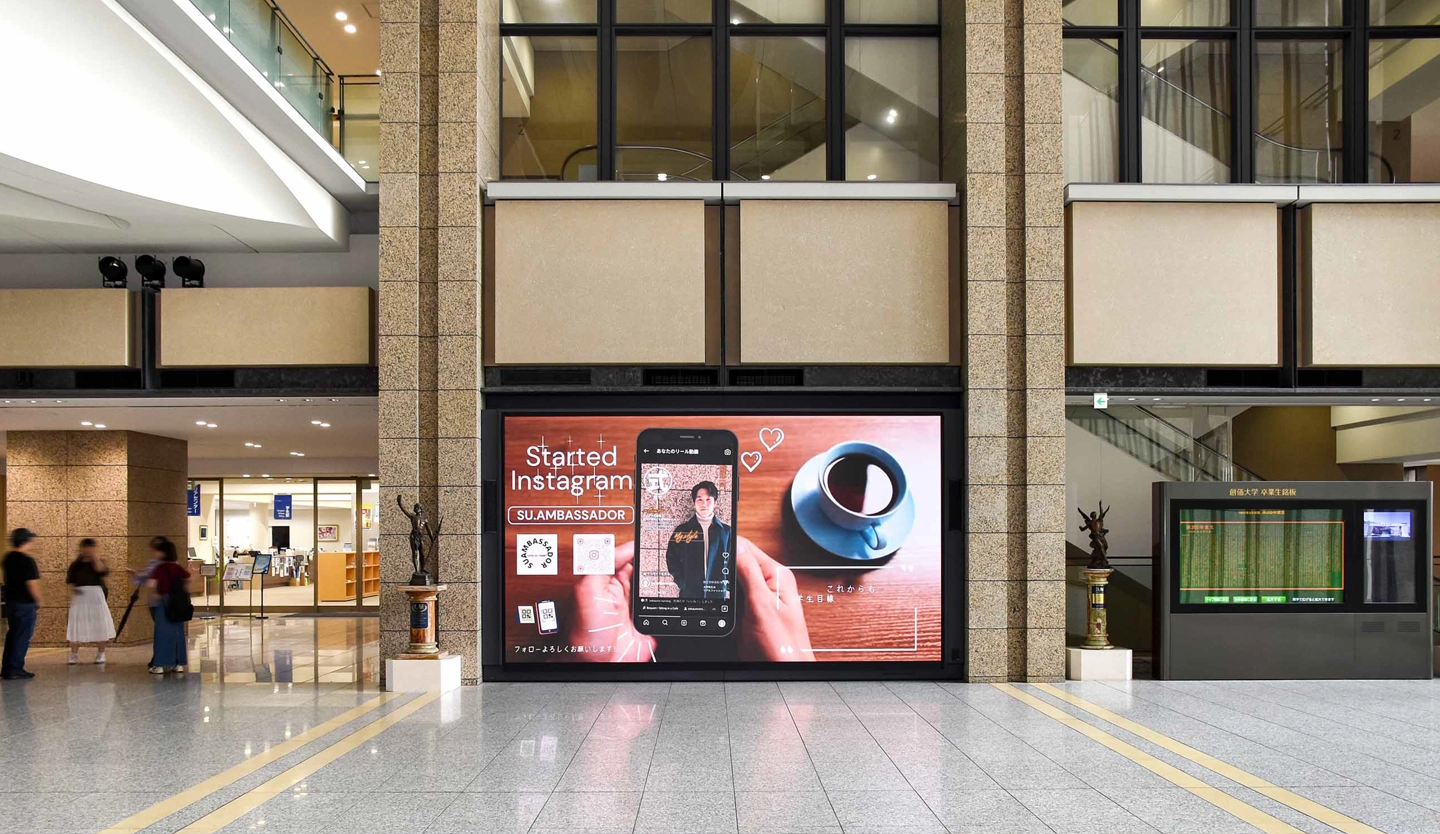 LEDディスプレイにリプレースしたところ、外光がたくさん入る環境でも明るく鮮やかで、予想を上回るきれいな映像が表示できています。高解像度でベゼルの継ぎ目もないため、小さい文字もくっきり。リプレース前より、立ち止まって映像を見る学生が増えました。また、リアルな映像を活用して駅伝大会のパブリックビューイングをしたり、式典の際はフォトスポットになったりと、イベントでの利用も人気です。e-Signage Sは情報発信元の各部署でも運用しやすく、システム担当者の負担が軽減しました。