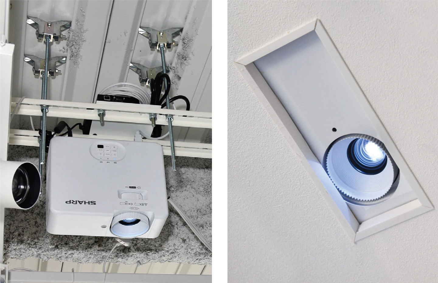 2階は天井から吊り下げ、3階では天井に埋め込んで設置