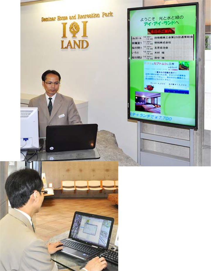 フロントのパソコンで更新しているので、お客さまの来館時間や滞在予定に合わせてコンテンツをすぐに変更