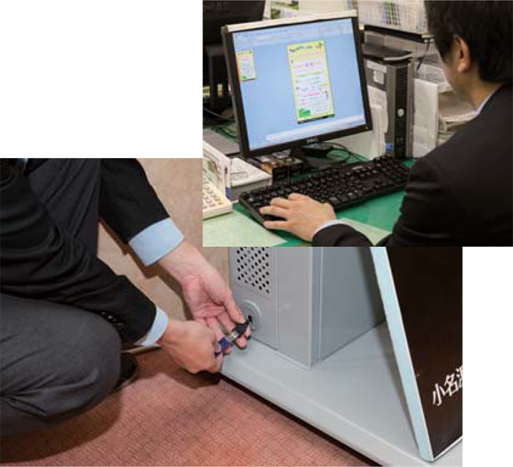 - ディスプレイひとつで何種類もの情報をお知らせでき、省スペース、高効率の情報発信が可能になりました。