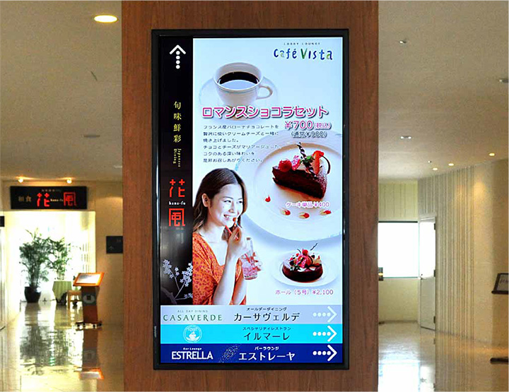 - 盛りだくさんのおすすめ情報を、ディスプレイから次々と発信でき、ホテルの魅力がしっかりと伝わるようになりました。