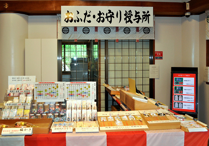 ディスプレイでお守りの種類や季節の行事などを紹介