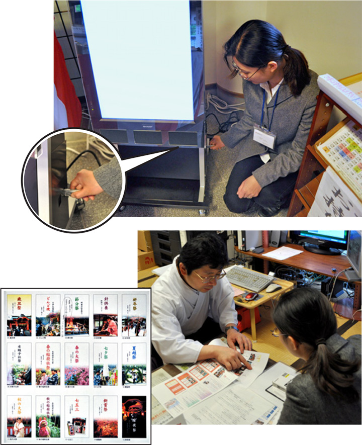 こうした状況の中、シャープの担当者が商品を神社まで運び込み、その場で説明をしてくれました。「コンテンツの展開」「画質の鮮明さ」「使いやすさ」が実物を見てよく分かり、このことが導入の大きな決め手になりました。