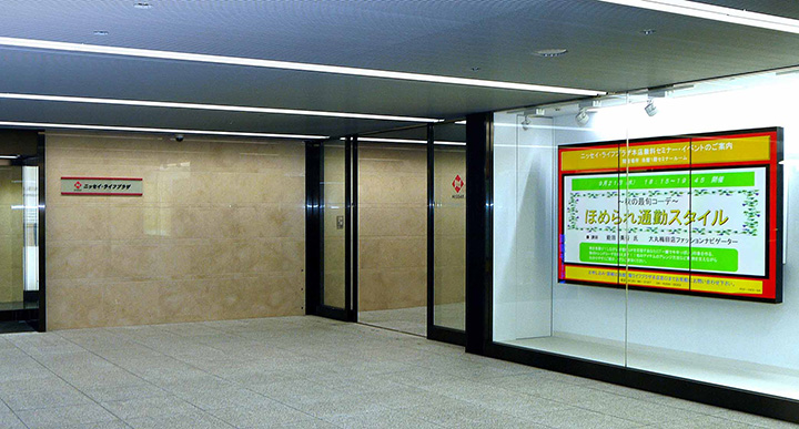 社屋の改装を機に、2011年6月、地下鉄「淀屋橋」駅への連絡通路に面した本社ビル地下2階の壁面に60v型3面マルチディスプレイ、本社ビル1階内のライフプラザ入口横に60v型1台を導入。