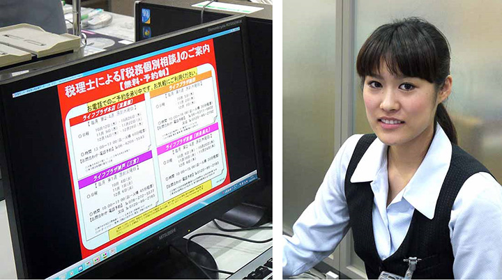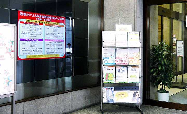 ニッセイ・ライフプラザ本店さま(右写真1階)保険契約に関する手続きのほか、資産活用などの相談サービスも行われている。
