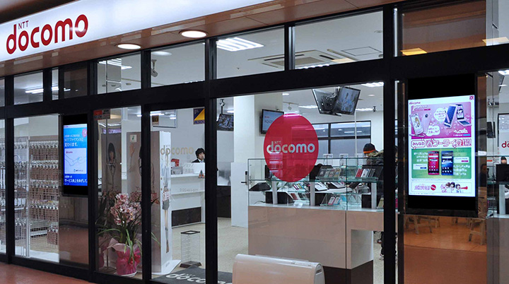当社はディスプレイの販売店として、他社が経営するショップへの導入も積極的に行っており、ドコモショップ本町店さまに60v型4面マルチを納入しました。今後もさらに力を入れ、当社が経営するショップはもちろん、関西の他のドコモショップにも、導入をおすすめしていきたいと考えています。