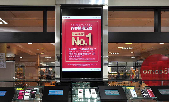 柱に42v型を設置して、ドコモからのお知らせを表示