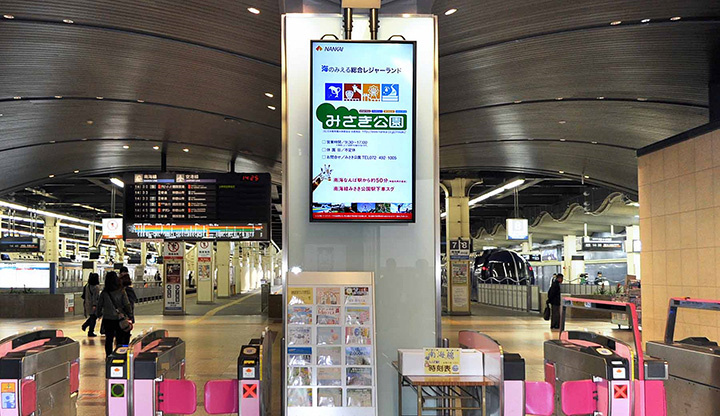 現在、南海線側と高野線側の改札に1台ずつ設置し、同じ情報を流していますが、今後は沿線に合わせた情報を配信していきます。さらに朝昼夜の時間帯や平日・週末といった曜日ごとに配信内容を変えることで、客層に合わせたより訴求力の高い広告メディアにしていきたいと考えています。