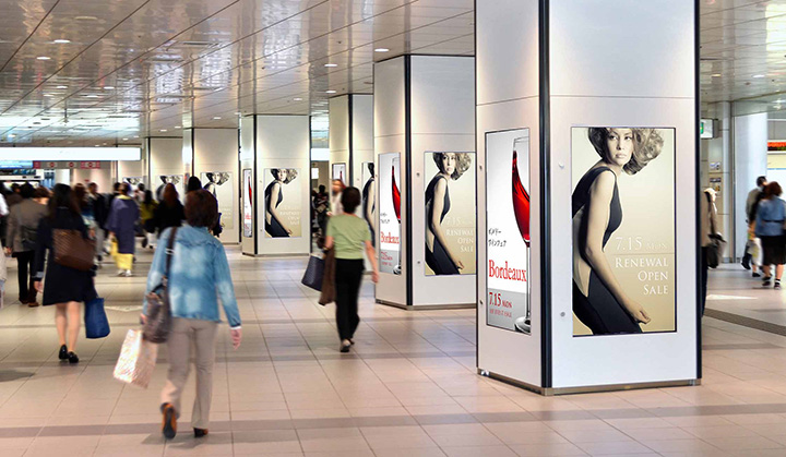 デジタルサイネージの導入により、媒体としての価値がさらに高く評価されたことで、以前を上回るペースでクライアントさまよりご出稿をいただいております。また、動画など多彩な広告表現が可能となったため、これまで少なかったアパレル関係のクライアントさまからも定期的にご出稿いただけるなど、新たな業種の広告も増加しています。