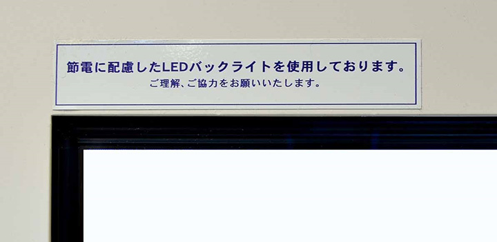 ディスプレイの上部にLEDバックライト使用のシールを貼付し、 節電アピールに