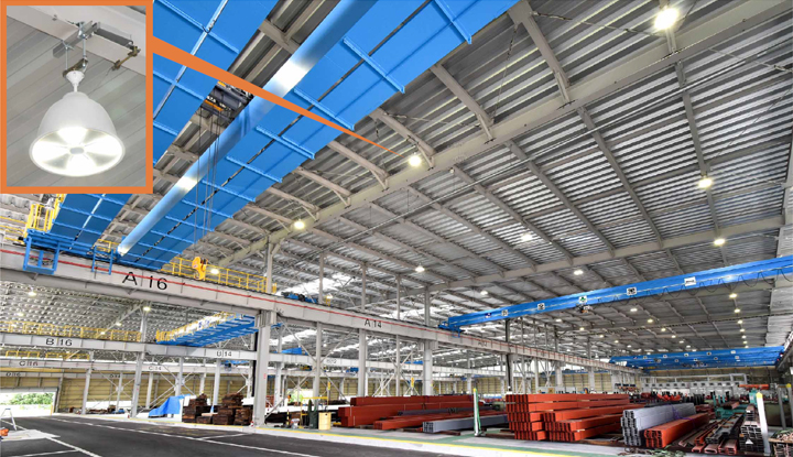 商品保管施設の全面リニューアルにあわせ、管球交換の手間がかからないLED照明へ。
