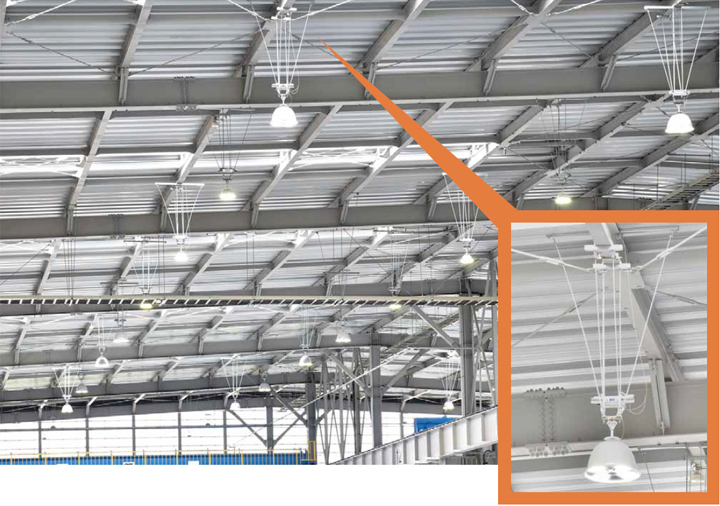 - LED高天井照明で、商品管理や補修等の作業に適した明るく見やすい環境を実現。