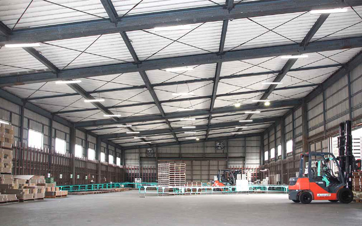反射笠型と高天井照明を組み合わせて、より快適な作業環境に