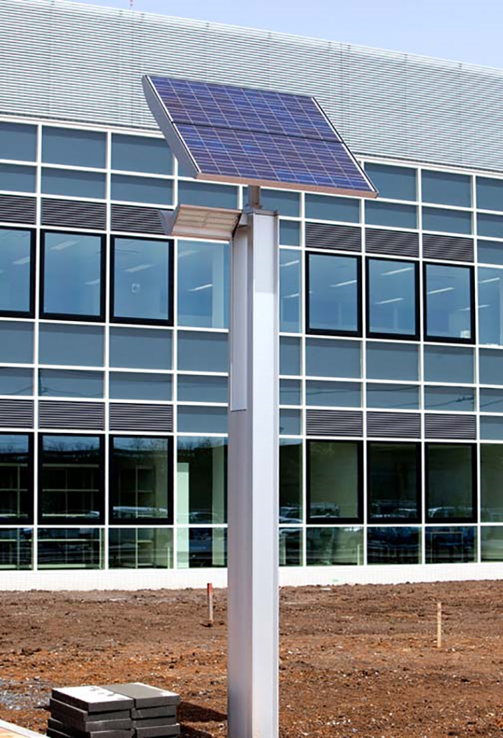 そこで、工場の正門付近で効果的に環境対策をアピールする方法として、ソーラー・LED照明灯に着目しました。太陽光パネルとLED照明という環境時代を象徴する機器が一体となっており、ご来訪者に環境配慮型工場を説明するきっかけにもなると考えたのです。