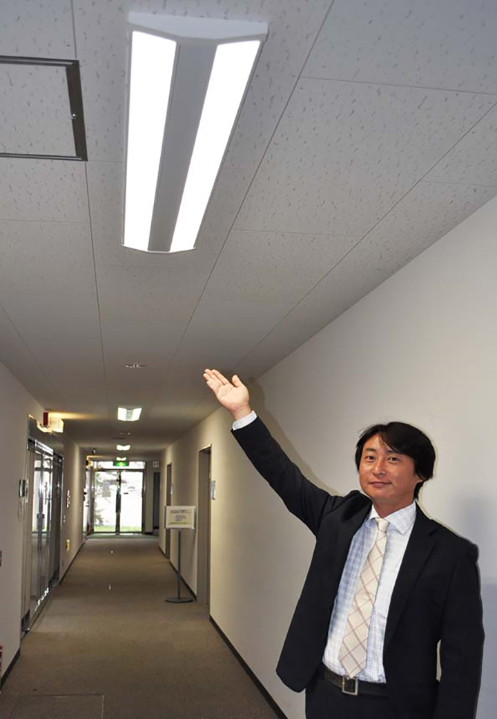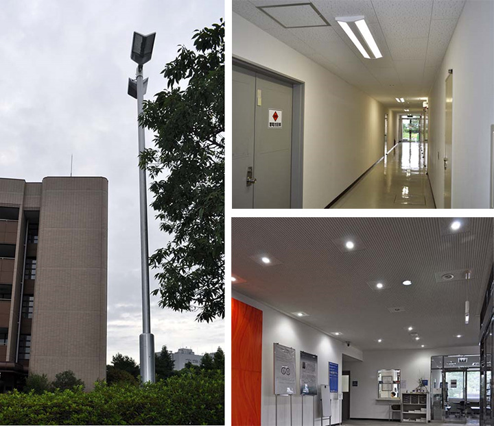 今回、共用部分への導入となりましたが、将来的には、研究室、会議室等、全館の照明にLED照明を導入していきたいと考えています。