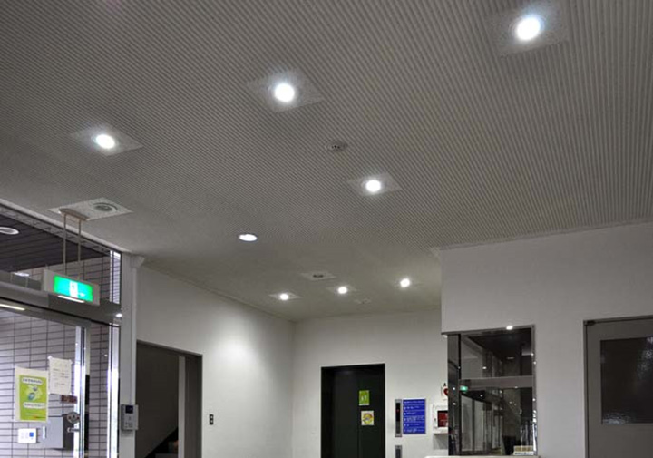 - 館内のストレート型、ダウンライト、さらに駐車場のLED防犯灯など、その場所に対応する豊富なラインアップで導入がスムーズに運びました。