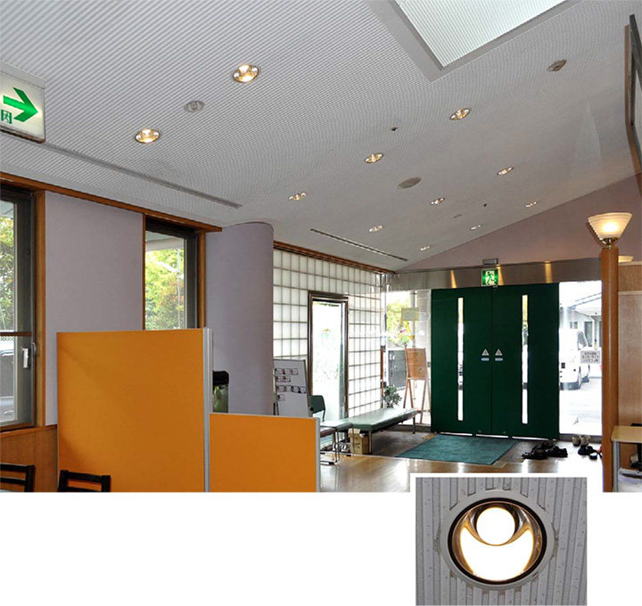これまで当施設では300個以上の電球型蛍光灯を使用してきましたが、館内の9割の照明をLED電球に一新し、明かりをリフォーム。週に5~6回と多かった管球交換の手間も大幅に省け、電球色の明かりも温かみのある施設を演出してくれています。