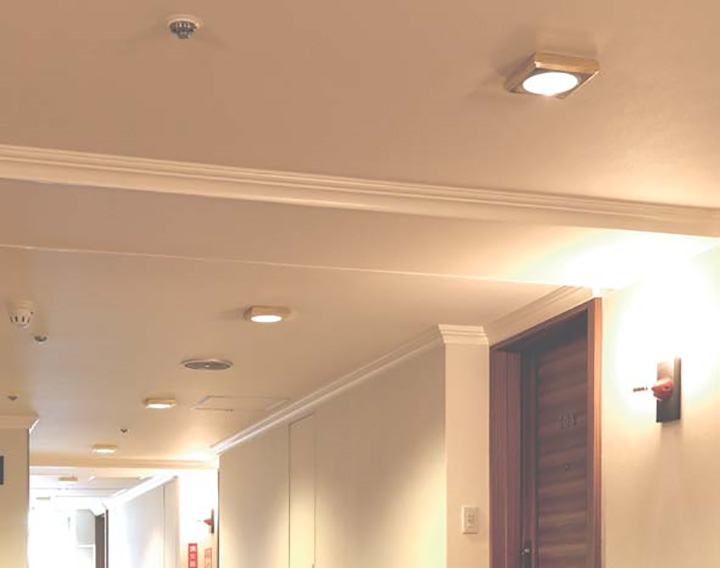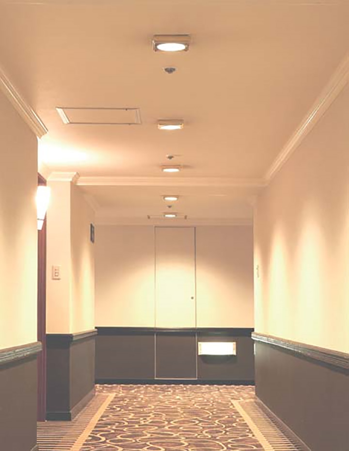 客室エリアの廊下すべての照明を、白熱灯からLED照明へ切り換えました。「電気代を削減するエコノミー」と「環境負荷を低減するエコロジー」、この2つの課題を効率的に達成しました。