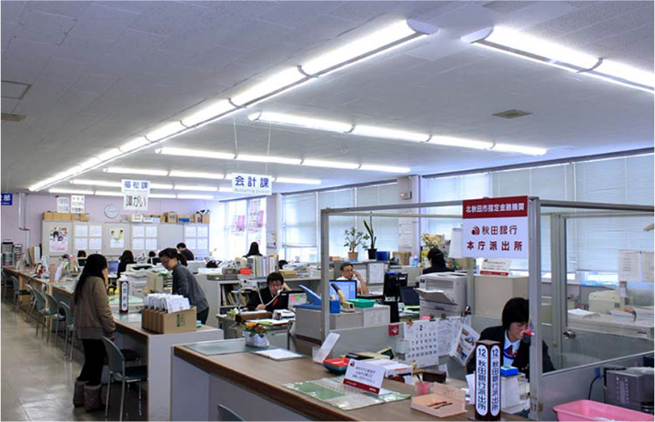 市役所2F。古くなった蛍光灯のちらつきに困っていた職員からも喜びの声