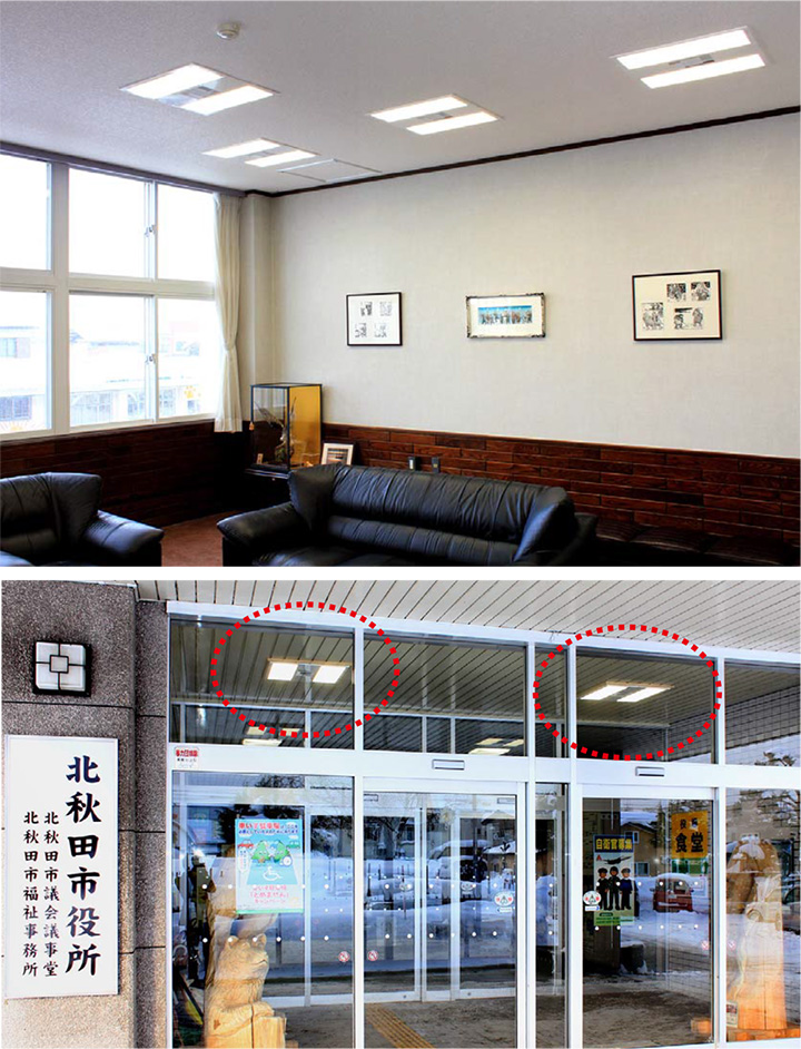 2010年12月、市役所の1階、2階のメイン照明をLEDに交換。玄関、応接室にはプラズマクラスター搭載のLED照明を導入。