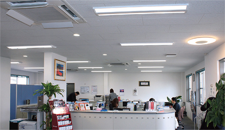 お客さまが事務所に入られたとき、会社の印象を左右するのは照明です。以前から照明の明るさや色調の統一感は会社の身だしなみと考え、2年に一度、全ての管球を一斉交換してきましたが、経費もかかっていました。そこで事務所移転に合わせ、オフィス照明を全てLED照明に切り替えることにしました。