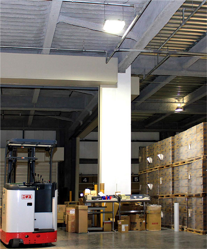 2011年2月、物流倉庫内の明るさを補う照明として追加で導入。入荷・出荷作業を行うスペースの頭上(床上約6m)に設置されている。