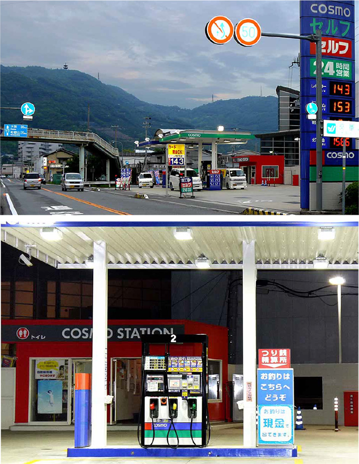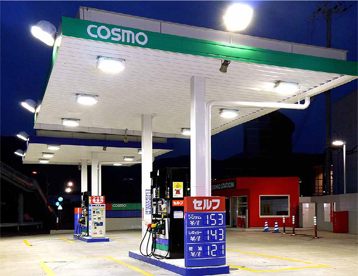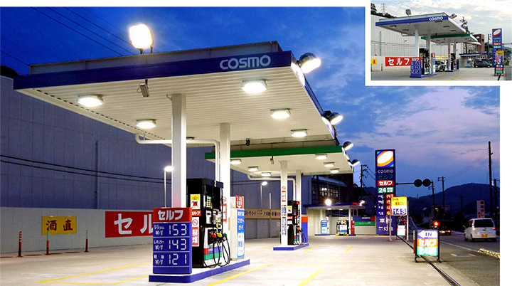 2011年5月、直営ガソリンスタンド・コスモ石油 セルフステーション下津さまの照明を水銀灯からリニューアル。
