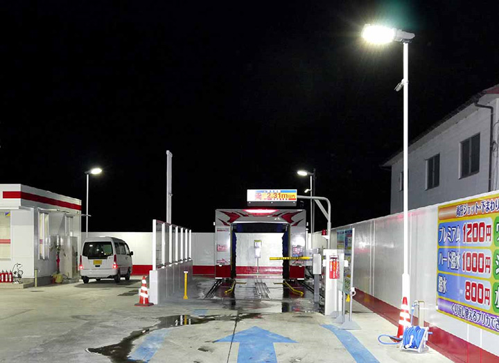 洗車場もLEDヤード灯で虫が寄らず、スタッフやお客さまに好評