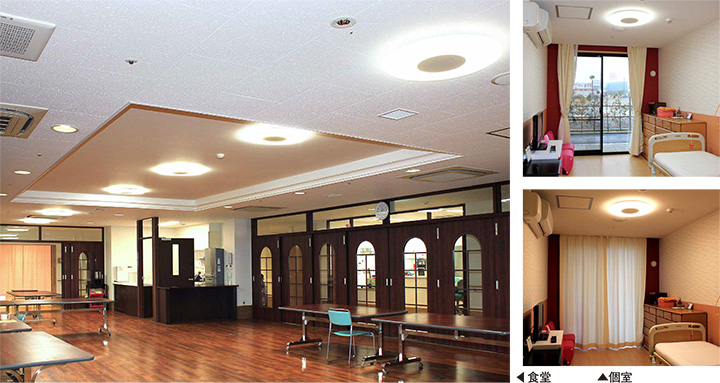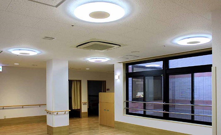2011年5月、施設の新築移転に伴い、各個室、ショートステイルーム、デイルーム、食堂などのメイン照明として導入。