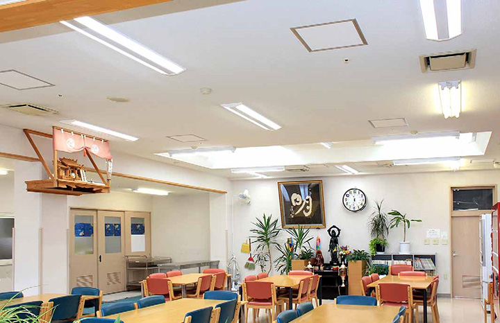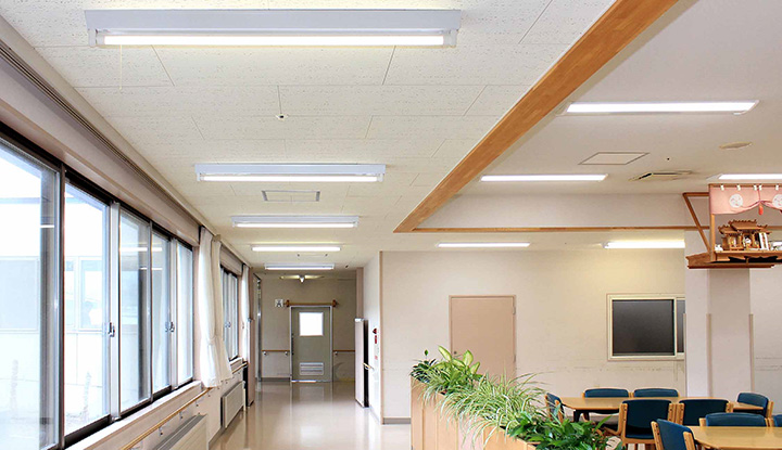 天井裏の構造上、同じ場所にしか照明が設置できないということもあり、従来の照明器具とほぼ同じ形状の直管形LED照明に着目しました。しかも、設置時に出力設定ができ、明るさと節電のバランスが選べる点にもメリットを感じました。当施設では70%の出力設定で、照明の消費電力が従来比約60%の節電になることに納得しました。
