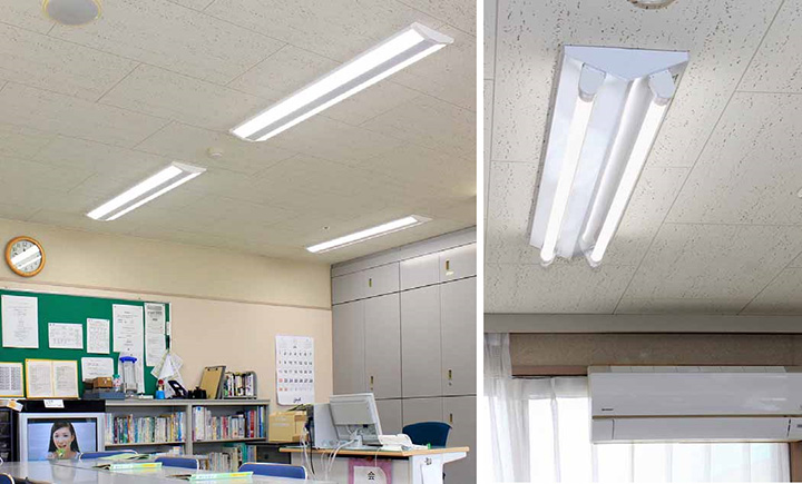 - 従来使用してきた蛍光灯に近い形状の直管形LED照明により、天井の改装をせずに置き替えできました。